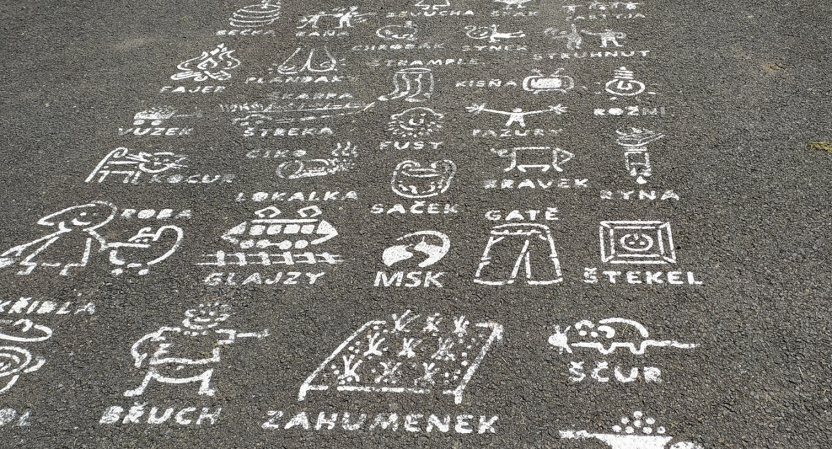 Příklad 1 - umělecké kresby, loga regiony na páteřní cyklorase 5 u Jeseníku nad Odrou v Moravskoslezském kraji.