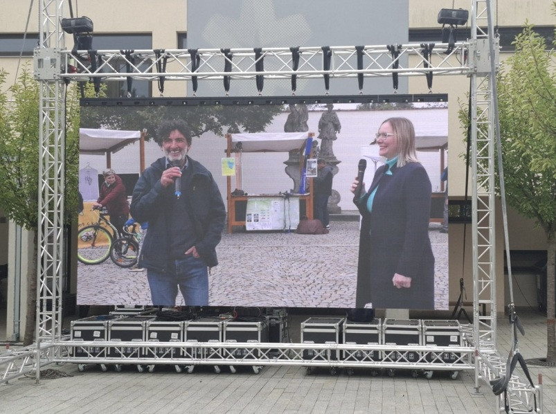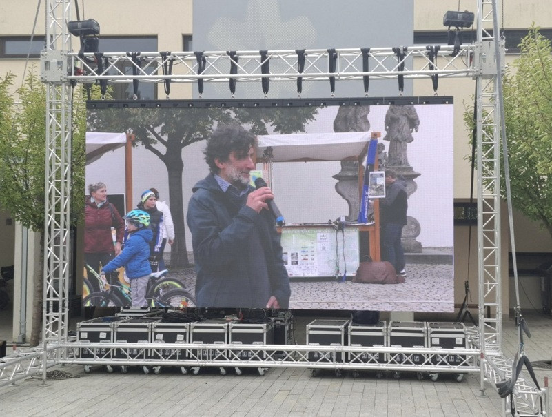 Sám hovořil o přínosech udržitelné mobility a před jeho vystoupení byla promítána videa ambasadorů, kteří po celý měsíc září testují kola. Olomouckému regionu totiž bylo nabídnuto 2 osobám nákladní kolo pro převoz nákladů, 2 osobám nákladní kolo pro převoz dětí a dále bude nabídnuto 6 osobám elektrické skládací kolo, kteří se rozhodli nepoužívat v testovacím období automobil. Osoby byly vybrány konkrétně z regionu Bystřička, Šternbersko a Uničovsko, jako spádová oblast pro město Olomouc. Osoby byly vybrány na základě spolupráce s městy. Oni se staly ambasadory změny dopravního chování, byly s nimi točena videa, které byly použity i při této akci.