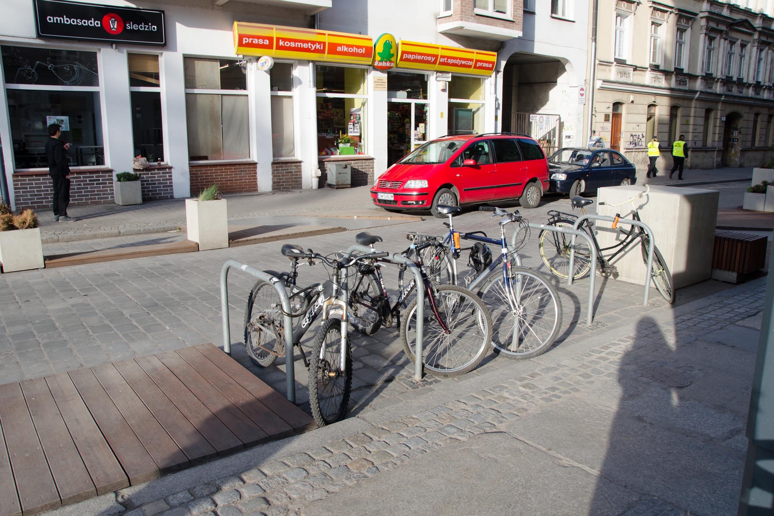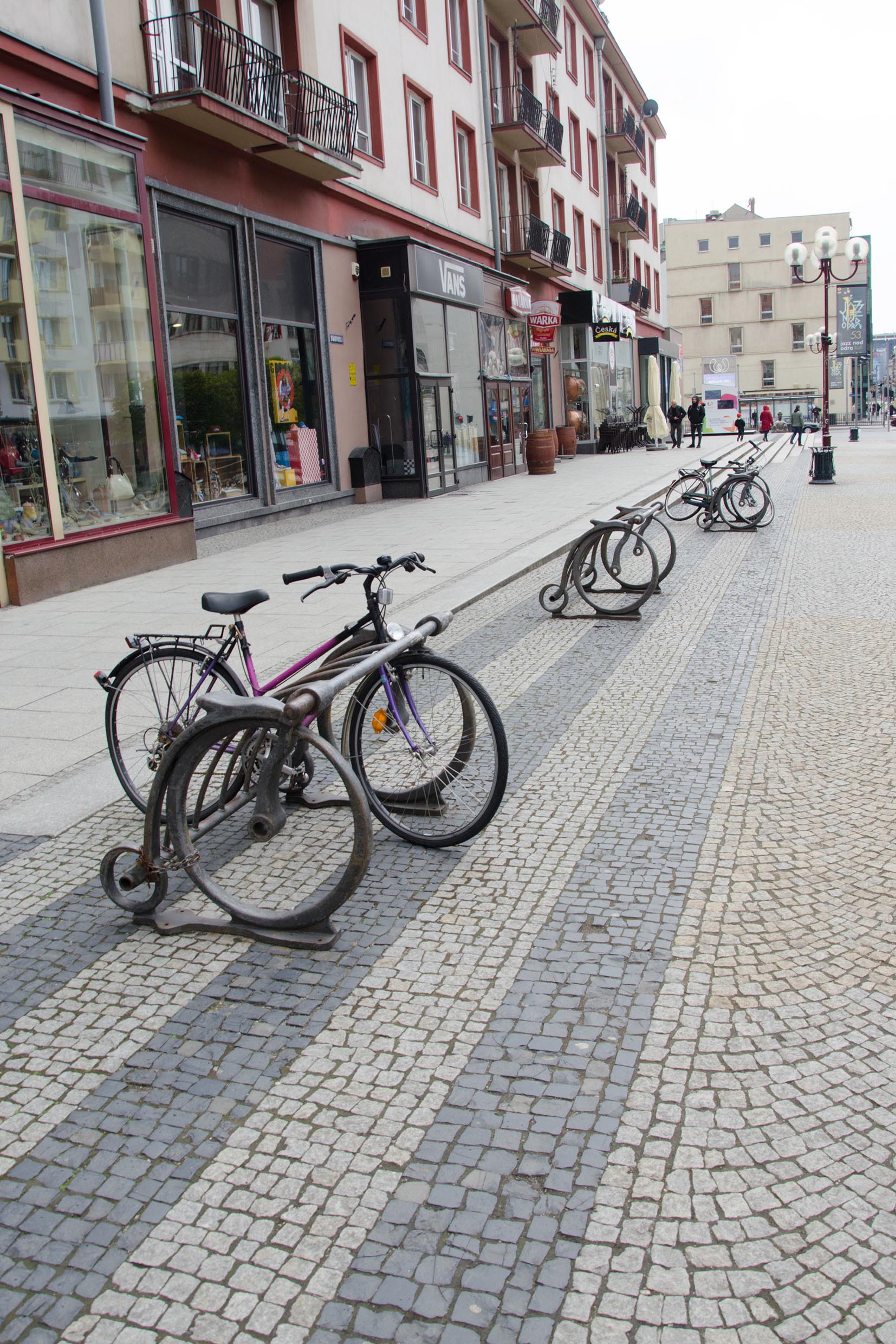 - stojany na kola úplně všude - všechny použitelný - na opření a bezpečné zamknutí a to i ty v historickém centru. Člověk nemusel hledat stačilo se podívat kolem sebe a vždycky člověk viděl alespoň jedno hnízdo stojanů - 10 stojanů pohromadě nebylo vyjímkou... u obchodů, kostelů, škol, administrativních budov, na náměstí;