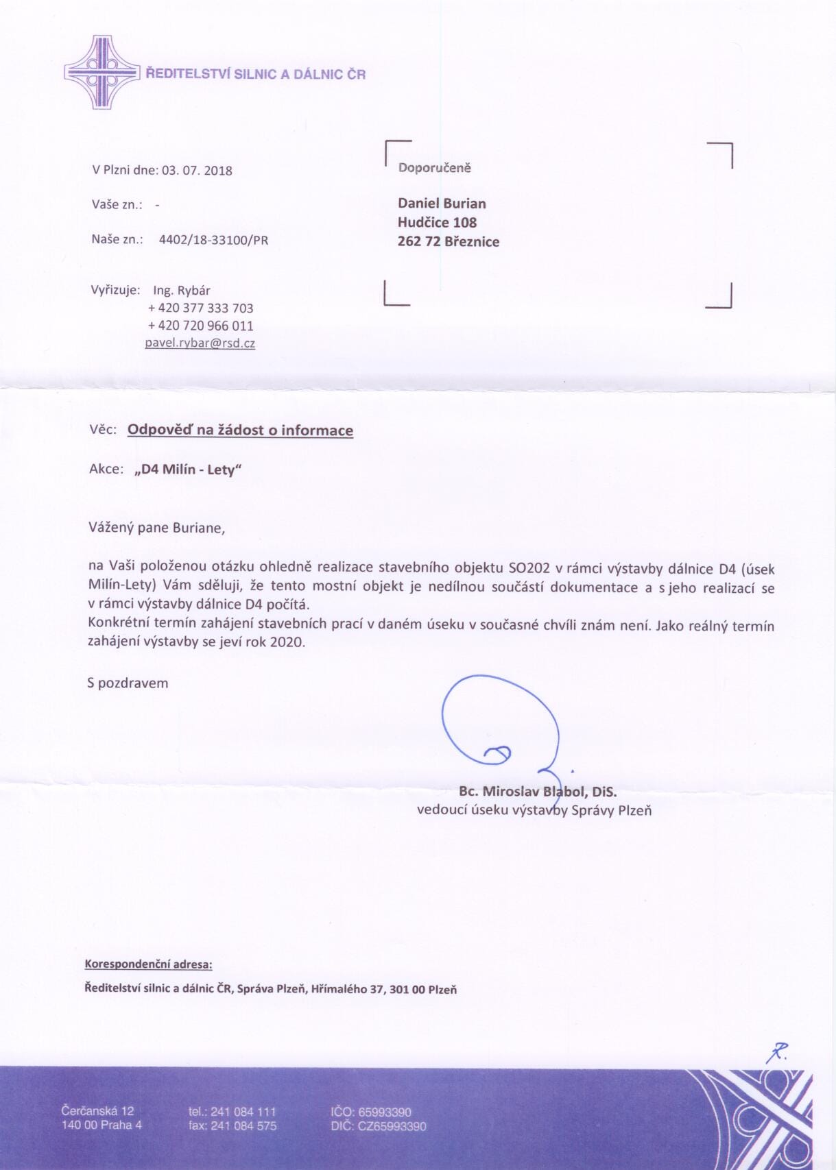 Co zatím víme. Sdružení se podařilo zjistit, že plánovaný dálniční most přes D4 je již zahrnutý do stanoviska EIA jako mostní objekt SO222 pro převedení budoucí cyklostezky. Viz tabulka níže.
