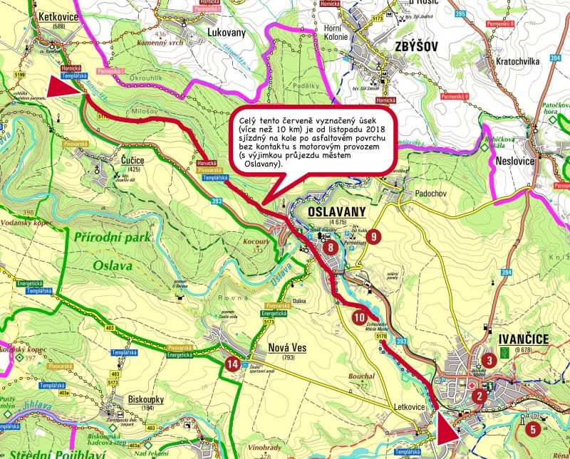 25. 03. 2017 | Stezka Oslavany - Ivančice, která byla uvedena do provozu před dvěma lety, odvádí cyklisty z nebezpečné silnice II. třídy mezi dvěma centry v regionu, kterými jsou města Oslavany a Ivančice.